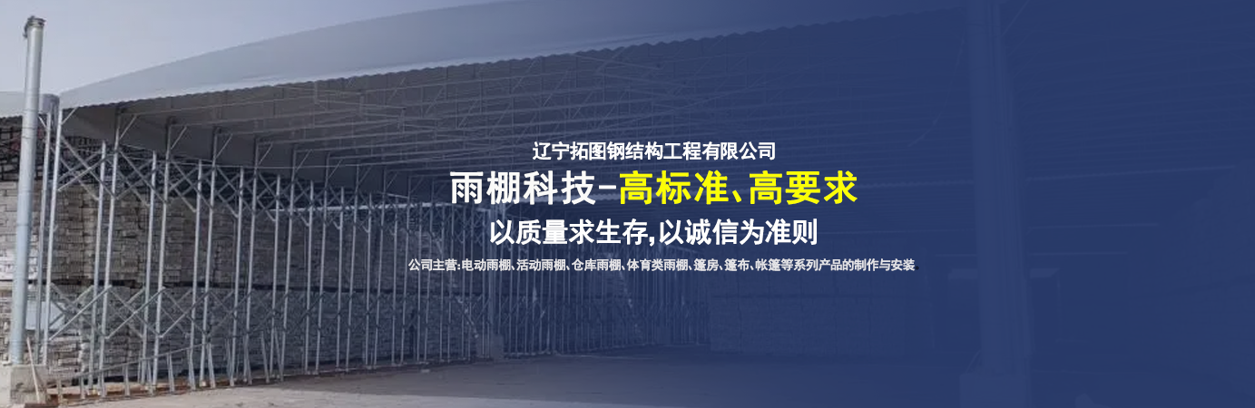 遼寧拓圖鋼結(jié)構(gòu)工程有限公司是一家專業(yè)從事推拉篷設(shè)計、制作、安裝、使用、維修的綜合性公司。公司主營:電動雨棚、活動雨棚、倉庫雨棚、體育類雨棚、篷房、篷布、帳篷等系列產(chǎn)品的制作與安裝。 遼寧拓圖鋼結(jié)構(gòu)工程有限公司堅持以市場為導(dǎo)向,以科技創(chuàng)新為動力,以質(zhì)量求生存,以誠信為準(zhǔn)則,倡導(dǎo)求實、進(jìn)取、創(chuàng)新的企業(yè)精神。“科學(xué)的管理、嚴(yán)謹(jǐn)?shù)脑O(shè)計、 的制作安裝、嚴(yán)格的質(zhì)量檢測、良好的后期服務(wù)成就企業(yè)的信譽(yù),為您提供優(yōu)質(zhì)服務(wù)?! ?nbsp; 遼寧拓圖鋼結(jié)構(gòu)工程有限公司傾力于開發(fā)應(yīng)用三維空間結(jié)構(gòu)與新材料的結(jié)合,將廣告藝術(shù)視覺表現(xiàn)形式與張力膜材科學(xué)的結(jié)合,推出多彩推拉蓬,依靠先進(jìn)的科學(xué)技術(shù),將推拉蓬建筑表現(xiàn)形式無限延伸,立志走在建筑科學(xué)的前沿,引導(dǎo)建筑時尚潮流,我們的目標(biāo)是使推拉蓬建筑在中國發(fā)展壯大?! ?nbsp; 遼寧拓圖鋼結(jié)構(gòu)工程有限公司憑著極強(qiáng)的事業(yè)熱情和豐富的專業(yè)經(jīng)驗以“勤勉進(jìn)取、銳意創(chuàng)新、至誠至信”的精神使公司得到迅速健康發(fā)展,業(yè)務(wù)范圍遍及全國??茖W(xué)的管理、嚴(yán)謹(jǐn)?shù)脑O(shè)計、高標(biāo)準(zhǔn)的制作安裝流程,嚴(yán)格把控產(chǎn)品質(zhì)量,熱誠的售后服務(wù)是企業(yè)競爭力的源泉?! ?nbsp; 遼寧拓圖鋼結(jié)構(gòu)工程有限公司人愿以最誠摯的態(tài)度,歡迎廣大客戶的蒞臨與溝通!愿為市場提供優(yōu)...